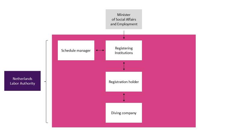- The diving company is responsible for compliance with rules such as working conditions regulations and the rules of the relevant registration scheme. In certain situations, the diving company must report the diving operations (Dutch) to the Netherlands Labour Authority.