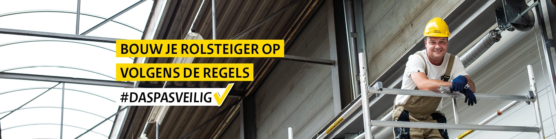 Volandis' A-sheet on Mobile scaffolding (Dutch) - including a handy checklist - contains clear information on safe assembly. lf you work according to this A-sheet, you will comply with the legal requirements for working safely with mobile scaffolding. You may also assembie the mobile scaffolding in a different way than described in the A-sheet. In that case, however, you must be able to demonstrate that your own method offers at least the same level of protection.